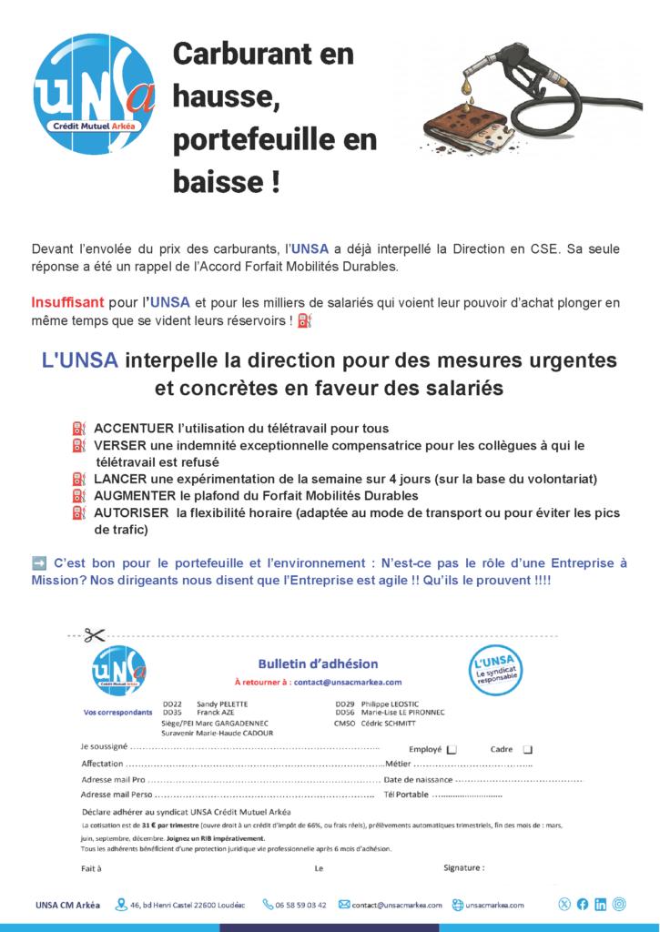 Vous trouverez ci joint notre dernier tract interpellant la Direction concernant la hausse des prix des carburants ⛽.